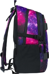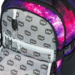 A BAAGL Skate Galaxy átgondolt iskolai hátizsák diákoknak, akik a praktikumot és a stílust egyaránt keresik. A három különálló rekesz megkönnyíti a tankönyvek és füzetek áttekinthető elrendezését, a belső szervező és a párnázott zseb pedig helyet ad a 15"-os laptopnak vagy táblagépnek. Az elülső oldalon két pánt a gördeszka rögzítéséhez, így a deszka mindig kéznél van.