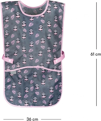 A panda mintával díszített részletek vidám és szórakoztató megjelenést kölcsönöznek a köténynek, amelyet a gyerekek imádni fognak.