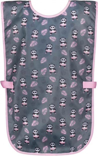 A gyerek kötény panda mintával úgy lett tervezve, hogy megvédje a gyerekeket a különböző tevékenységek során. Szürkés alapja különböző színes elemekkel játékos és elegáns megjelenést nyújt.