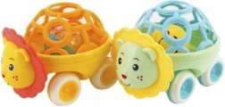 Aranyos műanyag csörgő kisautó állatfigurával, ideális első játék 3 hónapos kortól. Könnyen megfogható, könnyű, és a szabadonfutásnak köszönhetően finoman gurul. Támogatja a finommotorika fejlesztését, az érzékelés fejlődését és a szem–kéz koordináció első lépéseit. Két színváltozatban elérhető.