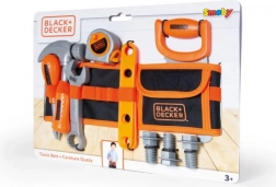 Szerszámos öv állítható pánttal, Black & Decker licenccel. Tartalmaz 14 darab tartozékot: fűrész, csavarhúzó, kalapács, villás-kombinált kulcs, mérőszalag, 3 csavar, 3 lapos csatlakozó és 3 anya. Tárolózsebbel. Méretek: 44 × 10 × 6 cm.