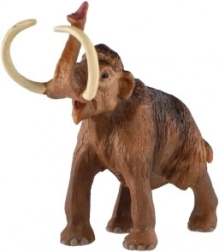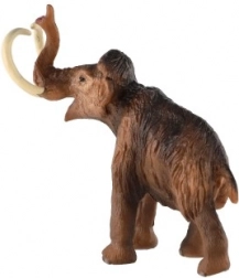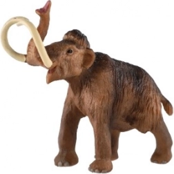 Ez a műanyag figura pontosan ábrázolja a gyapjas mamut részleteit, beleértve a jellegzetes agyarakat és a szőrzet struktúráját.