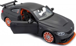 Ez a precízen kidolgozott BMW M4 GTS modell 1:24 méretarányban fém és műanyag elemeket ötvöz a tökéletes realizmus és tartósság érdekében. A nyitható ajtóknak és a gondosan tervezett belső térnek köszönhetően minden szögből látványos.