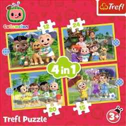 Cocomelon, Ismerd meg a hősöket gyerekeknek szóló puzzle készlet, amely 4 különálló kirakóst tartalmaz. Minden Cocomelon rajongónak készült, akik szeretik az animációs sorozatot.