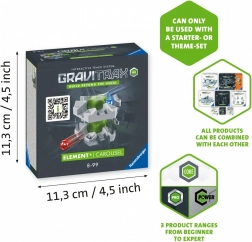 A Körhinta kiegészítő dinamikát és kiszámíthatatlanságot ad a GraviTrax PRO pályáidhoz. A golyók több irányból is beléphetnek a körhintára, megpördülnek, majd továbblépnek a következő szintre. Kiválóan fejleszti a kreativitást, a logikus gondolkodást, valamint felkelti az érdeklődést a fizika és a térgeometria iránt.