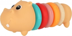 Ez a színes, érzékelést fejlesztő, víziló alakú kirakó ötvözi a játékot és a tanulást. A gyűrűkön lévő számok és matematikai szimbólumok a kézügyesség gyakorlását a matematika alapjainak vidám felfedezésévé teszik. A puha, biztonságos szilikon kellemes tapintású és ideális a kis kezeknek.