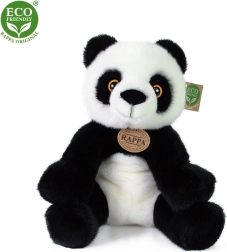 Aranyos, 27 cm magas plüsspanda, amely örömet szerez a kicsiknek és a nagyoknak egyaránt. Magas minőségű plüssből készült, kézi kidolgozással, és környezetbarát, ECO‑FRIENDLY töltettel újrahasznosított PET palackokból – a legkisebbek számára is biztonságos.
