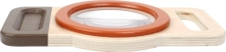 FSC® fából készült, tartós műanyag lencsével kiegészítve, amely tiszta és stabil képet biztosít 3× nagyítással. A praktikus zsinór lehetővé teszi a biztonságos hordást a csuklón vagy a rögzítést egy hurokra, így a kis természetkutatók mindig kéznél tarthatják.