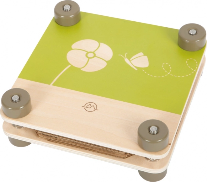 A kiváló minőségű, Discover sorozatba tartozó fa virágprés ideális eszköz kis felfedezőknek és alkotni vágyóknak. A két erős falap négy fém csavarral és anyával könnyen meghúzható, így a gyerekek egyenletes nyomást érnek el a virágok, szirmok és füvek tökéletes szárításához.
