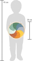 Ez a modern színekben pompázó, dizájnos fa kirakó a Montessori szellemében a szabad játék élményét nyújtja. A gyerekek gyakorolhatják a rendszerezést, az összeillesztést, a minták alkotását és a logikus gondolkodást. Összerakva hatásos mandalamotívum születik, amely a gyerekszoba dekorációjaként is szolgálhat.