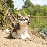 Puha, bolyhos szőrzet szürke-fehér árnyalatokban és részletgazdag hímzések alkotják a bájos, mégis élethű farkast, amelyet a gyerekek azonnal megszeretnek.