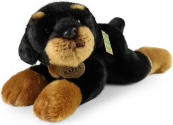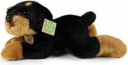 Aranyos, fekvő helyzetű plüss Rottweiler 30 cm hosszban, amely örömet szerez gyerekeknek és felnőtteknek egyaránt. Realista kidolgozás, prémium minőségű, puha plüss és környezetbarát töltet újrahasznosított PET-palackokból, amely a legkisebbek számára is biztonságos.