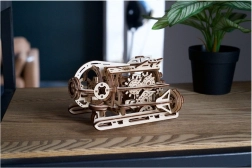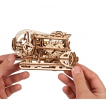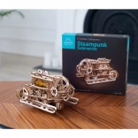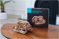 A steampunk tengeralattjáró fa modelljével elmerül a mechanika és a részletgazdag dizájn világában. A modell steampunk stílusban készült, amely a vintage és a modern elemeket ötvözi. A tengeralattjárót gumiszalag hajtja, egyenesen halad és kanyarodni is képes, a Start/Stop kapcsolónak köszönhetően pedig könnyen irányítható.