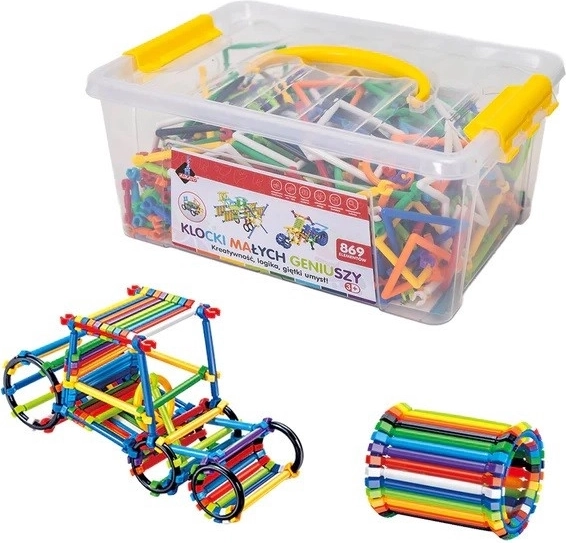 Akár 869 elem 10 színben lehetővé teszi fantasztikus alakzatok létrehozását, mint például kosár, hinta, repülőgép, motor vagy autó.