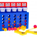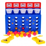 A 4 az egy sorban kosárlabda egy izgalmas ügyességi játék, amely a gyermekek számára 4 éves kortól ajánlott. Célja, hogy a színes labdákat függőlegesen, vízszintesen vagy átlósan egy sorba állítsuk be egyforma színnel, egy kosárba dobva. Az első játékos, aki ezt eléri, nyer. Egy egyszerűnek tűnő, mégis sok izgalmat ígérő játék!