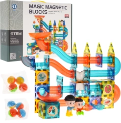 Fedezd fel a kreativitás világát ezzel a színes készlettel, amely 128 mágneses elemet tartalmaz. A készlet lehetővé teszi golyópálya megépítését tetszőleges elrendezésben. Az elemek kiváló minőségű anyagból készültek, simák és gondosan megmunkáltak. A beépített mágneseknek köszönhetően könnyen összeilleszthetők, és stabil szerkezetet biztosítanak. A csomag része egy képes útmutató példapályák összeállításához.