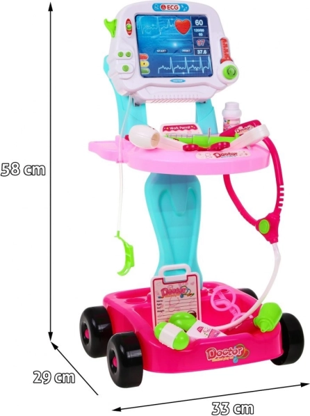 A gyermek orvosi kocsi remek kiegészítő minden gyermekszobában. Az orvosi szakma inspirálta, ez a kocsi mindent tartalmaz, ami szükséges a valós orvosi gyakorlat szimulálásához: