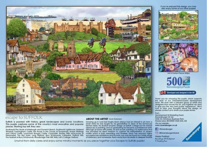 Élvezze a kikapcsolódást és az izgalmas kihívást a RAVENSBURGER „Szökés Suffolkba” 500 darabos kirakóval. Minőségi kivitelezés, pontos illesztések és gyönyörű motívum a nyugodt estékhez és a koncentráció edzéséhez.