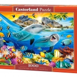 Fedezze fel a trópusi óceán varázsát ezzel a 1000 darabos puzzléval, delfinek egzotikus paradicsomban motívummal. Az összeállított kép mérete 68 × 47 cm, a darabok átlagos mérete körülbelül 1,9 × 1,7 cm, ami egyszerre nyújt szórakoztató és megnyugtató kirakózást. A minőségi kivitelezés és a gyönyörű színek ajándékként is örömet szereznek a puzzle szerelmeseinek.