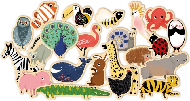 A DJECO fa mágnes szett kedvelt állatok színes válogatását kínálja – a pávától, zsiráftól és krokodiltól kezdve egészen a polipig, vízilóig, zebráig vagy a bagolyig. A gyerekek könnyedén megalkothatják saját állatvilágukat, történeteket mesélhetnek, és megtanulhatják felismerni az alakokat és színeket.