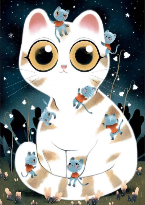 Fluoreszkáló (neon) puzzle bújós cicák motívummal, amely sötétben világít.