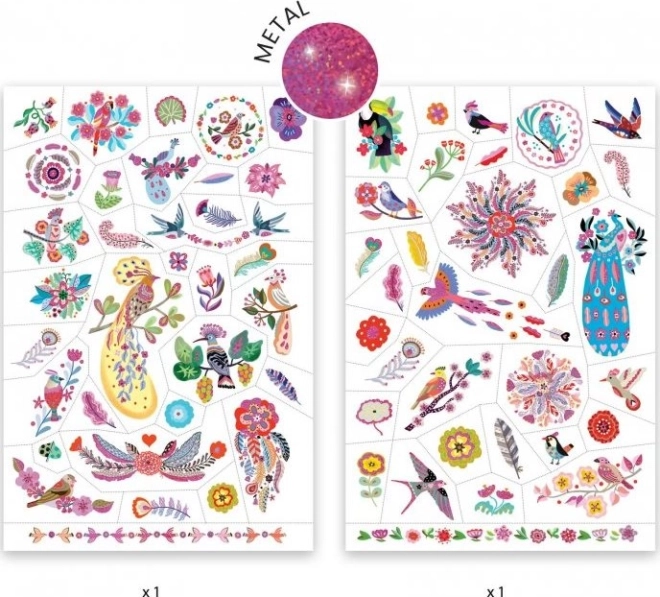 Fedezd fel a DJECO csillogó madárkákat ábrázoló színes ideiglenes tetoválásainak varázsát. A gyerekek imádni fogják a játékos illusztrációkat és a finom csillogást, amely szépen érvényesül a bőrön. A tetoválások vízzel könnyen felhelyezhetők, gyorsan száradnak és hosszan tartanak.