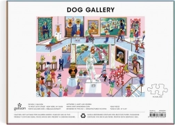 Kutya Galéria Puzzle egy szórakoztató illusztrációt mutat be Art-Jann Venema által, amely egy kutyákkal teli galériát ábrázol, ahol azok híres műveket csodálnak. Kiválóan alkalmas ajándéknak és minőségi nyomtatást biztosít újrahasznosított papíron.