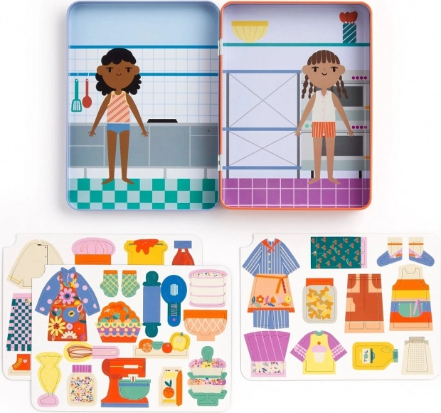 A MUDPUPPY Lehetek szakács mágneses készlet órákon át tartó, ötletes szórakozást nyújt a gyerekeknek. A könnyen tisztítható fémdobozban két színes konyhai jelenet és több mint 40 mágneses ruha- és konyhai kiegészítő található. A gyerekek kombinálhatják a figurákat, saját történeteket alkothatnak főzésről és sütésről, miközben fejlesztik képzelőerejüket.