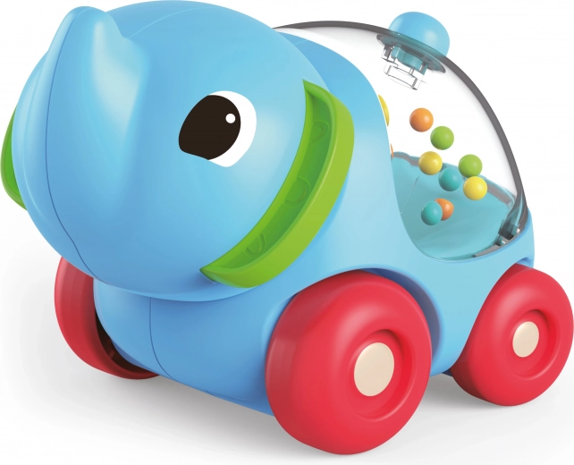 Ez a színes, kerekes kis elefánt-csörgő ideális első gurulós játék a babáknak. Mozgás közben csörgő hangot ad, ami motiválja a kicsiket a felfedezésre, a mászásra és az első tologatásokra.