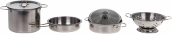 | | Magas minőségű rozsdamentes acél edénykészlet. Megjelenésében a valódi konyhai felszerelésekre hasonlít, miniatűr kivitelben. A készlet 3 éves kortól ajánlott. Biztosan örömet szerez minden kis szakácsnak. A készlet pozitívan hat a gyerekek fantáziájára és kreativitására, és fejleszti a főzés iránti szenvedélyt. |
