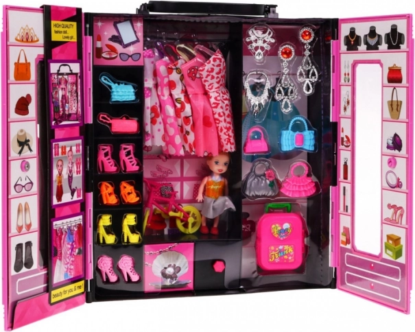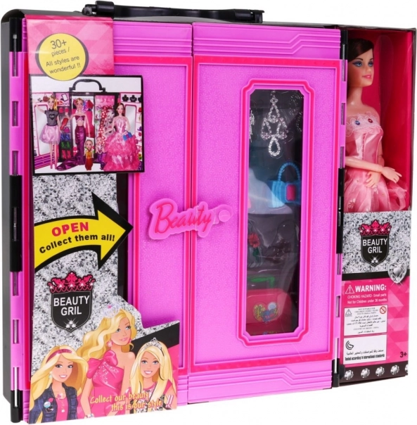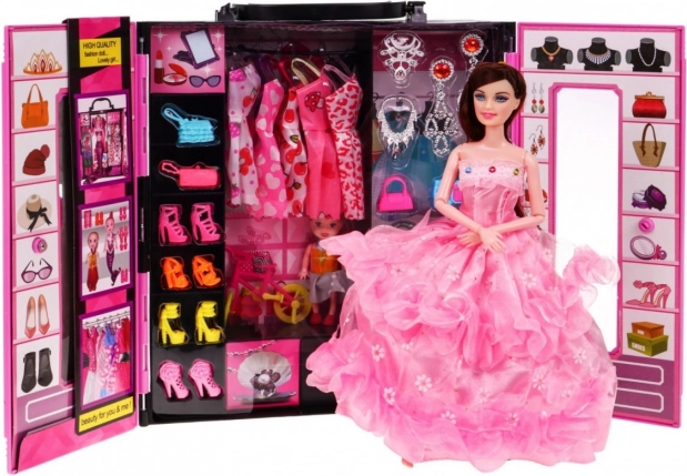 Garderob baba szettel csodálatos, nagy és színes készlet, amely minden kislány álma. Ez a készlet 30 elemet tartalmaz és fogantyúval rendelkezik a könnyű hordozás érdekében, hogy gyermeke bárhová magával vihesse.