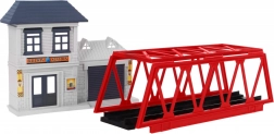 A készlet tartalmaz mozdonyokat, vagonokat, vasúti állomást, hidat és díszítő elemeket, mint például fákat vagy közlekedési jelzéseket. Ez a játék interaktív és kreatív élményt nyújt a gyermekek és szülők számára egyaránt.
