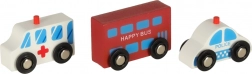 Ez a fa készlet lehetővé teszi a gyerekeknek, hogy saját várost építsenek különféle járművekkel és épületekkel.