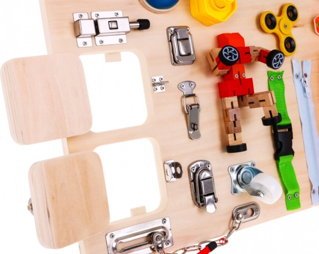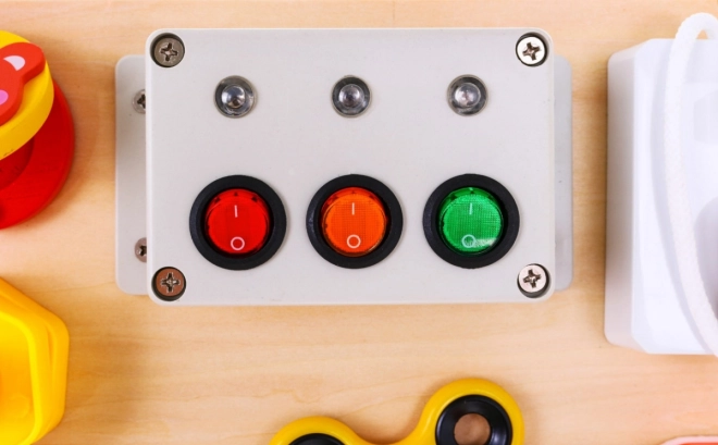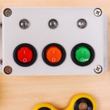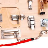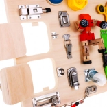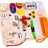 A fából készült multifunkcionális tábla úgy lett tervezve, hogy érzékelő és manipulációs élményeket nyújtson a gyerekeknek. Olyan elemeket tartalmaz, amelyeket a gyerekek a mindennapi életben gyakran látnak, és segít megérteni azok működését. Hang (csengő) és fény (diódával ellátott kapcsolók) elemeket tartalmaz, amelyek növelik az interaktív értékét. A táblát 2 AA elemmel működik, amelyek nem részei a csomagolásnak.