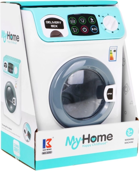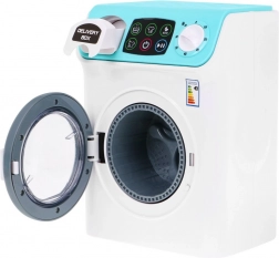 A mosógép nyitható dobbal és mosópor fiókkal rendelkezik. Az ajtó becsukása után automatikusan bekapcsolódik és a dob forogni kezd, motorhang kíséretében. Szinte mint az igazi! Az érintőpanellel programok beállítására és a hőmérséklet kiválasztására szolgáló világító gombbal a játék megkezdhető!