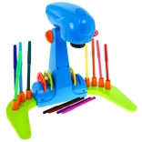 A projektor tartalmaz tároló poharakat a filcek és korongok számára, ami megkönnyíti a rendteremtést. Ez a szórakoztató eszköz támogatja a kreativitást, javítja a finommotorikus képességeket és erősíti a gyermek fantáziáját. A projektor összecsukható, ami helyet takarít meg.