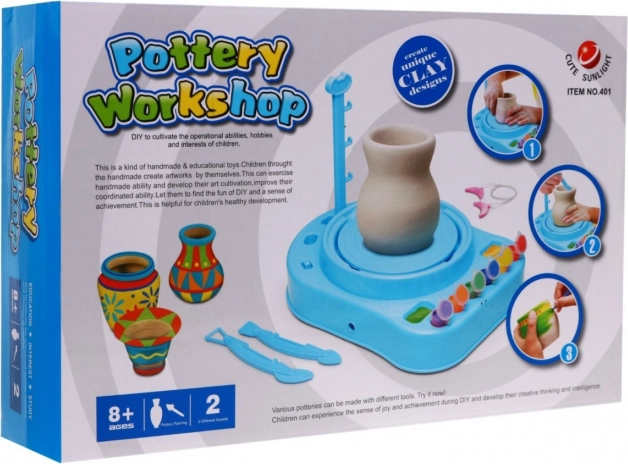A kis fazekas készlet egy oktató játék kerámia edények készítéséhez és festéséhez.