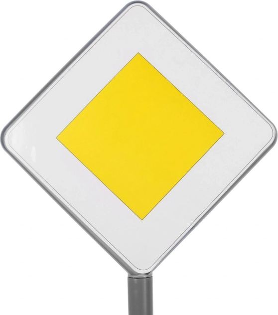 STOP; Kötelező jobbra kanyarodni; Elsőbbségadás kötelező; Főútvonal; Gyalogosátkelőhely