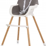 Praktikus és stílusos 2 az 1-ben gyerek etetőszék önállóan ülő gyermekeknek. Kínál magas és alacsony változatot, könnyen tisztítható, bőr bevonatú ülést, 5 pontos biztonsági övet és 3 pozícióban állítható, csúsztatható tálcát. A csúszásgátló végeknek és a lábtartónak köszönhetően biztonságos és kényelmes a mindennapi használat során.