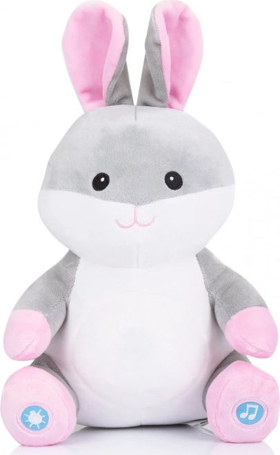 Egy nyugtató és szórakoztató plüss nyuszi kifejezetten újszülötteknek és kisgyermekeknek tervezve. Az aranyos plüssfigura három altatódalt játszik le, miközben a hasába épített éjszakai lámpa különböző színekben világít.