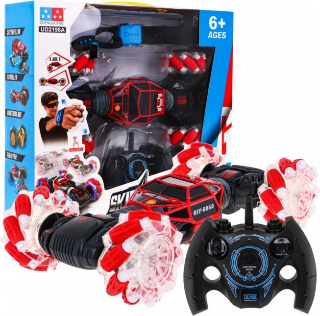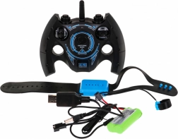 | A készlet tartalma | - jármű, - távirányító, - vezérlő karkötő, - USB-kábel a karkötő töltéséhez, - USB-kábel az akkumulátor töltéséhez, - 7,4 V-os akkumulátor. |