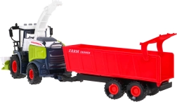 A pótkocsi felemelhető, kinyitható és lekapcsolható a kombájnról. A gyerekek berakodhatják és elszállíthatják a „termést”, ami támogatja a kreatív játékot és a finommotorikát.