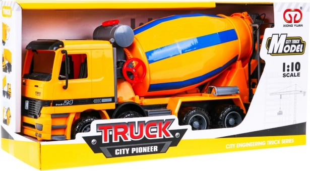 | | Az építőipari jármű – betonkeverő 3 éves kortól ajánlott. A játék minden részletre odafigyelve készült, hű mása az építőipari gépeknek. A jármű hátsó részén található a tölcsér a dob utántöltéséhez és a forgatható csúszda a „beton” kiöntéséhez. A dob mozgatható, és a jármű oldalán lévő karral forgatható. A vezetőfülke, akárcsak a valódi járműveknél, előrebillenthető. A betonkeverő nagy, széles kerekekkel rendelkezik, és különféle felületeken is képes közlekedni. Beltéri és kültéri használatra egyaránt ideális. A jármű elsőkerék-hajtással van felszerelve. A betonkeverővel való játék fejleszti az ügyességet, serkenti a gyermeki fantáziát és kreativitást, támogatja a szem–kéz koordinációt. |