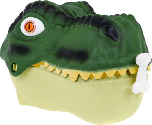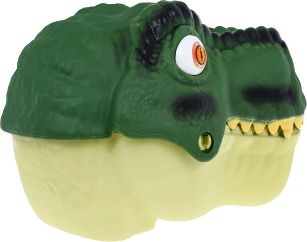 A nagy dínófej tartós tárolóként szolgál, könnyű nyitással és fogantyúval. Játék után mindent gyorsan elpakolhatsz, és kényelmesen magaddal viheted.