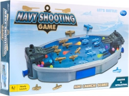 Az Arkád jellegű Tengeri csata játék 4 éves kortól és felnőtteknek is. A játék klasszikus, hiszen ki ne játszotta volna már kártyán, táblán stb. Ezúttal indítóeszközökkel, rakétákkal és hajókkal rendelkezünk. A játékot kétfős csapatokban kell játszani. A szabályok nagyon egyszerűek: el kell süllyesztened az ellenfél összes hajóját. Minden játékosnak van egy indítója, amelybe golyókat – rakétákat – kell betölteni. Célozz az ellenfél hajójára, és süllyeszd el. Aki elsőként süllyeszti el az ellenfél összes hajóját, az nyer. |