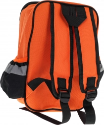 Könnyű textil hátizsák cipzáras főrekesszel, külső zsebekkel és fényvisszaverő elemekkel – a szerszámokat átláthatóan és biztonságosan tartja egy helyen.