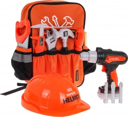 Ez a kreatív barkácsszett narancssárga hátizsákban valósághű élményt nyújt a gyerekeknek a szerszámok használatáról – biztonságosan és szórakoztatóan. A 2× AA elemmel működő akkus fúró (nem tartozék) cserélhető fejével a kicsik kipróbálhatják a csavarozást, fúrást és szerelést. A védősisak erősíti a kis mester szerepét és megtanítja az alapvető biztonsági elveket.