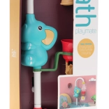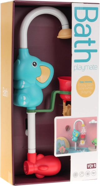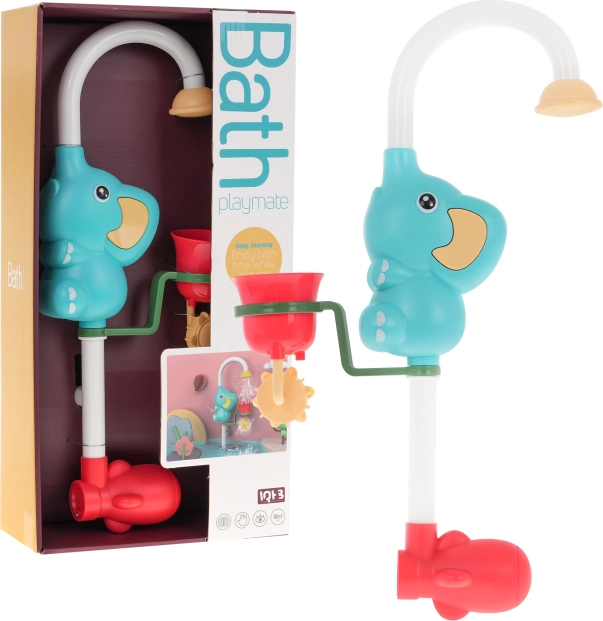 Ez a vidám elefántos fürdőjáték elemmel működik, és felszívja a vizet, amelyet aztán az elefánt ormányán keresztül a pohárba fecskendez ki. A pohár perforált, így a vizet különböző irányokba lehet permetezni egy 360 fokban forgatható kerék segítségével. A zuhany úgy van tervezve, hogy az alsó része víz alá legyen merítve, míg a felső része a víz felszíne felett maradjon. Két gumiszivattyú segítségével a játék könnyen rögzíthető a fürdőkádhoz vagy a zuhanyhoz. Az elefánt ormánya ezenkívül 180 fokban forgatható, ami növeli a játék változatosságát.