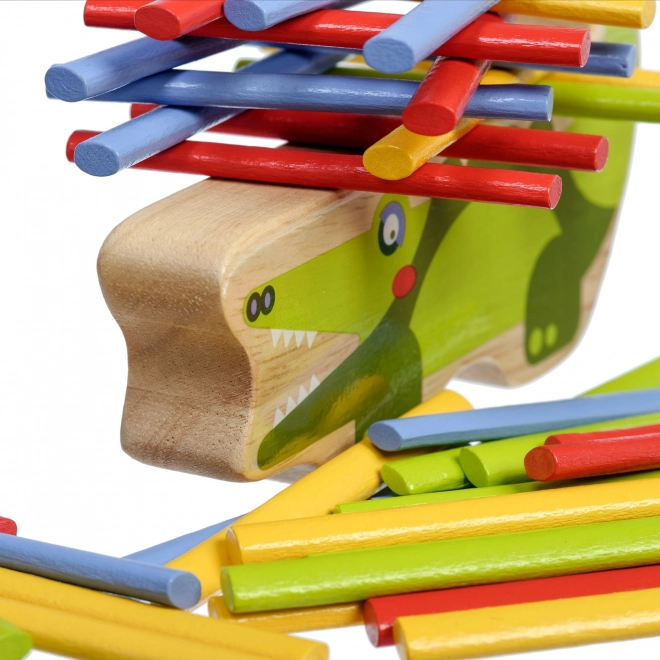 Fa Egyensúlyozó Játék Krokodil, egy szórakoztató és kreatív játék gyerekeknek, amely elősegíti a motoros készségek fejlődését és a türelmet. Színes pálcikákkal és krokodillal, mint alap, minőségi szórakozást nyújt órákon át.