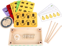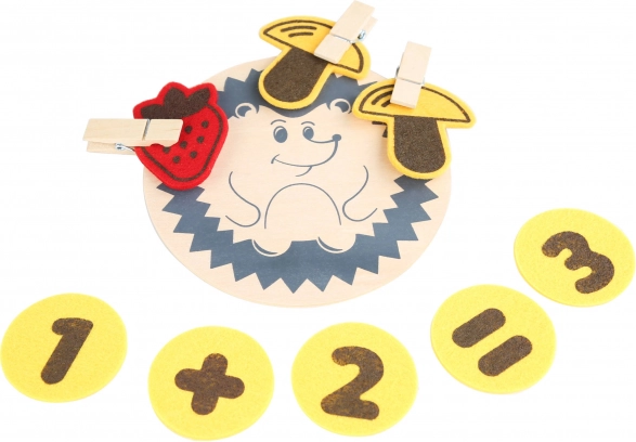 Ezzel a készlettel a gyerekek biztonságosan és kreatívan dolgozhatnak fa és textil elemekkel. A játék célja, hogy megismertesse a gyerekeket az alapvető matematikai műveletekkel és számokkal, amely alapot ad további tanulmányaikhoz. Minden részlet gondosan lett megtervezve, hogy támogassa a kitartást és koncentrációt.